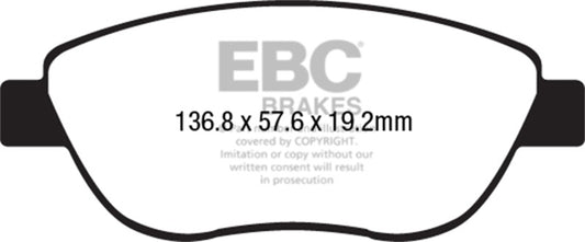 EBC 13+ Fiat 500L 1.4 Turbo Yellowstuff Front Brake Pads