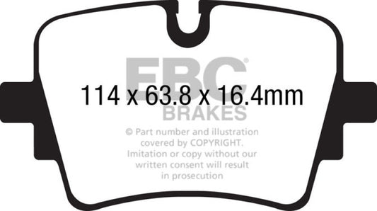 EBC 13+ Jaguar F-Type (Cast Iron Rotors Only) 3.0 Supercharged (340) Yellowstuff Rear Brake Pads