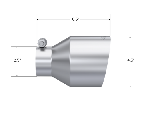 MBRP Universal T304 Stainless Steel Tip 2.5in ID / 5in OD Out / 6.5in Length Angle Cut Single Wall