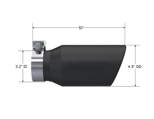 MBRP Universal Tip 4.5in OD / 3.2in Inlet / 10in Length / Angled Cut Rolled End - Black