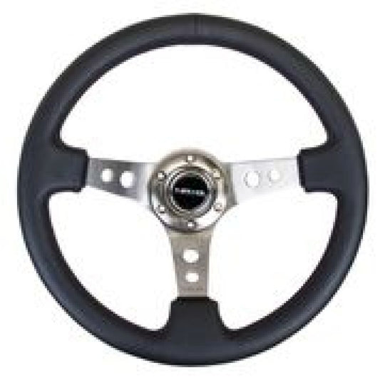 NRG Reinforced Steering Wheel (350mm / 3in. Deep) Blk Leather w/Blk Spoke & Circle Cutouts