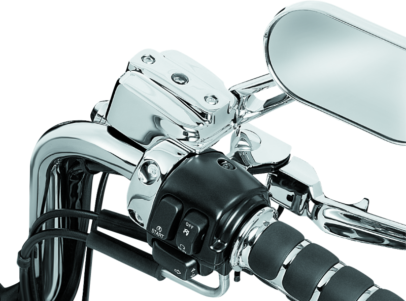 An inexpensive, fast and easy way to finish chroming most hand controls. The clutch perch is a complete chrome replacement unit. The master cylinder cover dresses up the reservoir and covers the entire visible hand brake bracket assembly.