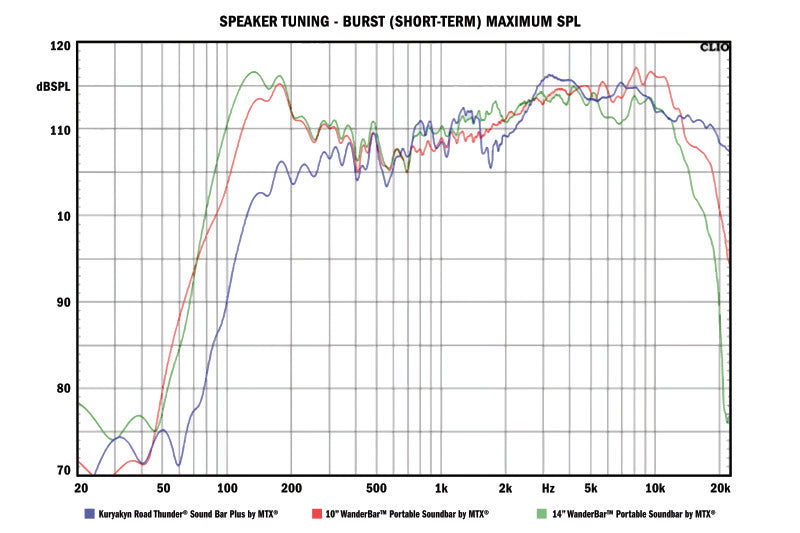 With 300-Watts of peak power and increased versatility, the Kuryakyn RoadThunder Sound Bar Plus by MTX takes handlebar-mounted audio to a new level. An internal four-channel amp powers two 2 in. x 3 in. full-range speakers with dual voice coils. Four high-frequency, 1 in., silk dome tweeters create powerful, distortion-free sound at any volume level. Durable, 1P66-rated housings are weather-resistant, while built-in heat sink and a self-protection circuit combats excessive heat and over/under voltage regulation. An internal 3.0 Bluetooth® receiver allows wireless connectivity to any Bluetooth-enabled smartphone or music device, and auxiliary input/output ports connect standard devices via a 3.5mm cable.
