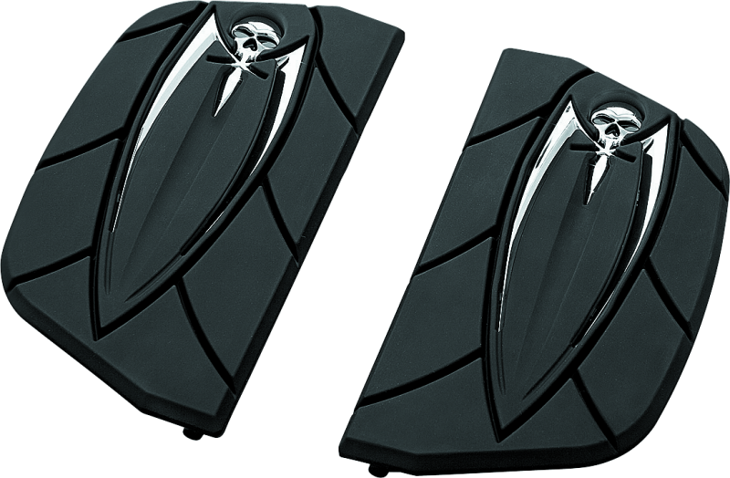 Direct replacements for the stock floorboard covers, the assemblies sit on top of the stock steel base plates so no comfort is compromised and the raised rubber edge keeps your boot heels off the pipes.