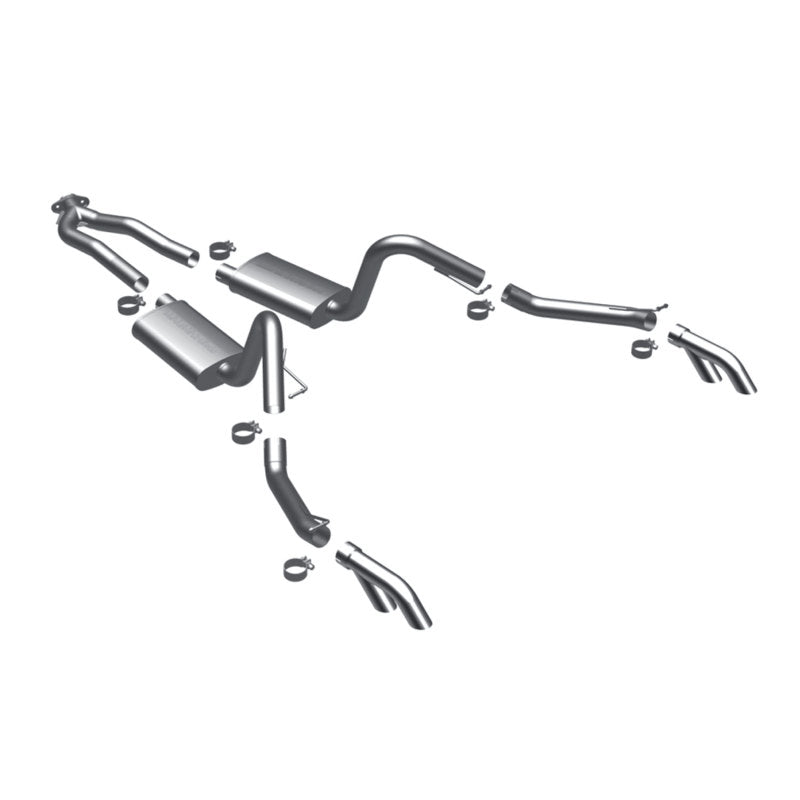 The MagnaFlow 1975-1981 Pontiac Firebird Street Series Cat-Back Performance Exhaust System 16830 brings out the personality of your 4.9L, 5.0L, 5.7L, 6.6L 1975-1981 Pontiac Firebird with our signature resonant, powerful engine tone and dyno-proven performance. Thanks to its fast-flowing, mandrel bent 2.5in. main piping and 2 Straight-Through mufflers ending in a Dual Split Rear exit with 2.25in. Polished Clamp-On Single Wall Turndown Cut Edge tips, this Pontiac Firebird exhaust kit has the performance chops to match its sporty sound and appearance. Upgrade your ride to the next level with an exhaust that has the pipes to put other Pontiac Firebird's to shame. With this system your vehicle will be producing Moderate exterior and Mild interior sound levels while leaving other cars and trucks feeling envious at every stoplight. Exhaust kit 16830 features a cat-back layout that replaces your ride's stock exhaust components from near the catalytic converter on back. Extensive 3D scanning during development has resulted in a direct-fit design that you can easily install yourself. 16830 is produced using CNC precision robotic manufacturing techniques and is backed by MagnaFlow's 1-year limited finish warranty and limited lifetime construction warranty.
