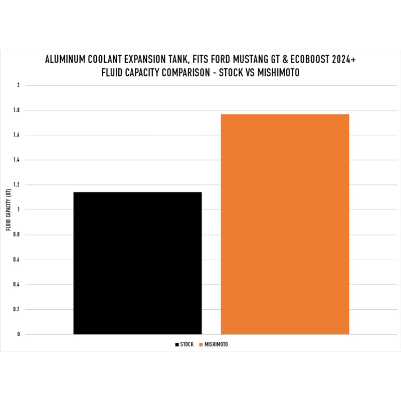 Introducing the Mishimoto Coolant Expansion Tank for the 2024+ Ford Mustang GT and EcoBoost. This direct-fit solution boasts all-aluminum construction that won’t yellow, crack, or leak with repeated heat cycles like the stock plastic tank will. Internal baffles prevent air entry during aggressive driving, while a 55-percent increase in coolant capacity improves heat dissipation. A high-visibility sight glass and stamped cold-fill line allow quick coolant level checks. Choose from a polished or micro-wrinkle black powder coated finish to match your style. Our expansion tank also features a coolant overflow port that allows you to install an NHRA-mandated overflow tank. This tank installs in an hour or less and is backed by the Mishimoto Lifetime Warranty to combine performance and aesthetics for a confident driving experience as long as you own your 2024+ Mustang.